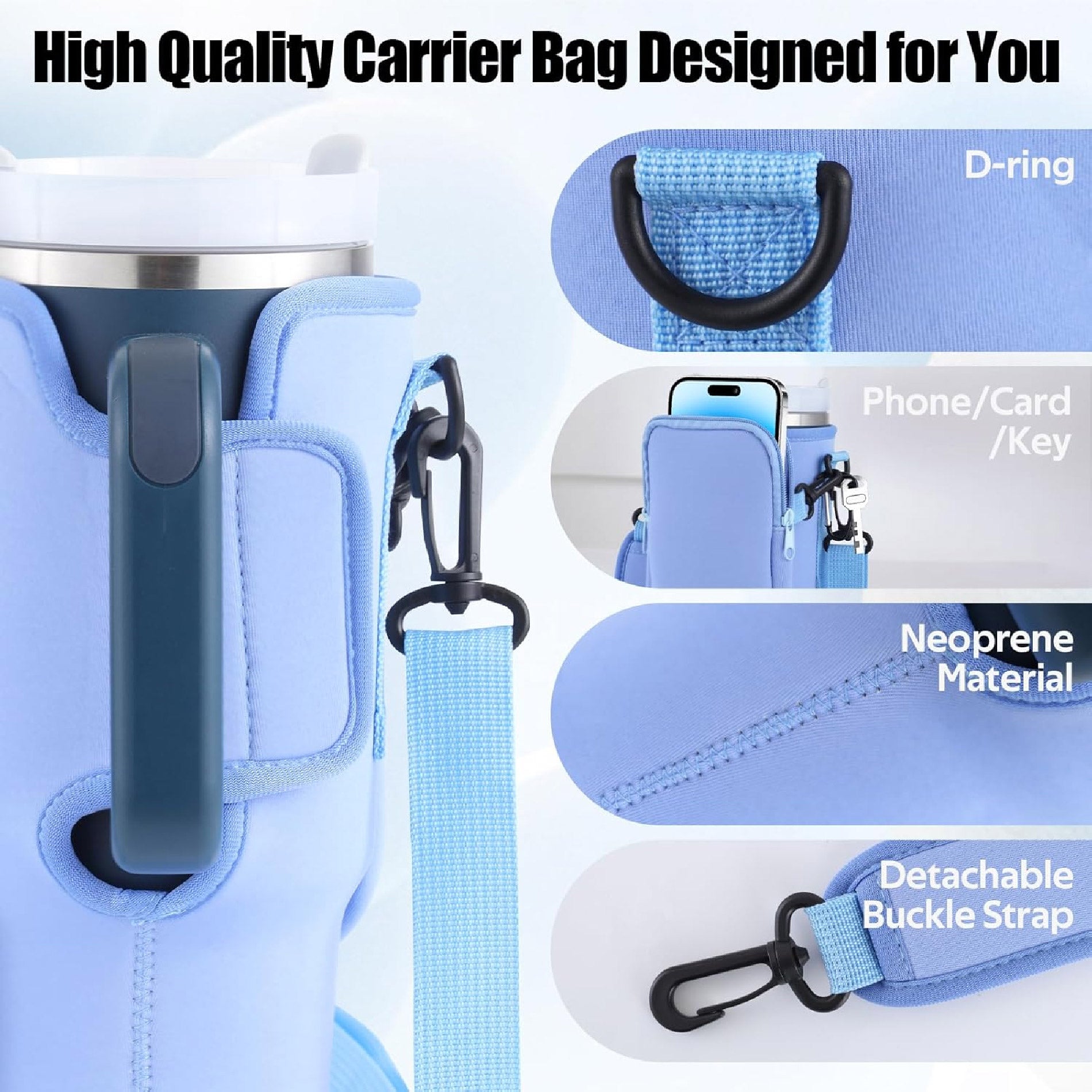 Amplia aplicación: nuestro soporte para botellas de agua con correa tiene una amplia compatibilidad con varias marcas y modelos de botellas de agua, como Stanley Quencher H2.0 de 40 onzas y Stanley Adventure Quencher de 40 onzas. Ofrece más comodidad para los entusiastas del aire libre.Correa de hombro acolchada: la correa de hombro con almohadilla suave se puede ajustar fácilmente entre 27.5 y 50 pulgadas para adaptarse a la mayoría de tamaños de cuerpo y permite un transporte cómodo. La bolsa de transporte de tazas con el diseño de gancho desmontable se puede quitar fácilmente la correa cuando no la necesites.Varios estilos: el soporte para vasos con correa hace que tu bolsa de vaso sea aún más elegante. El bolsillo frontal con cremallera es para dinero en efectivo, tarjetas, teléfono inteligente, llaves y otros artículos esenciales. Lleva tus pertenencias, no se requiere mochila adicional. Crossbody, hombro y mano son buenas opciones.El paquete Incluye:1* Funda para termoGarantía Sobre Defectos de Fabricación.