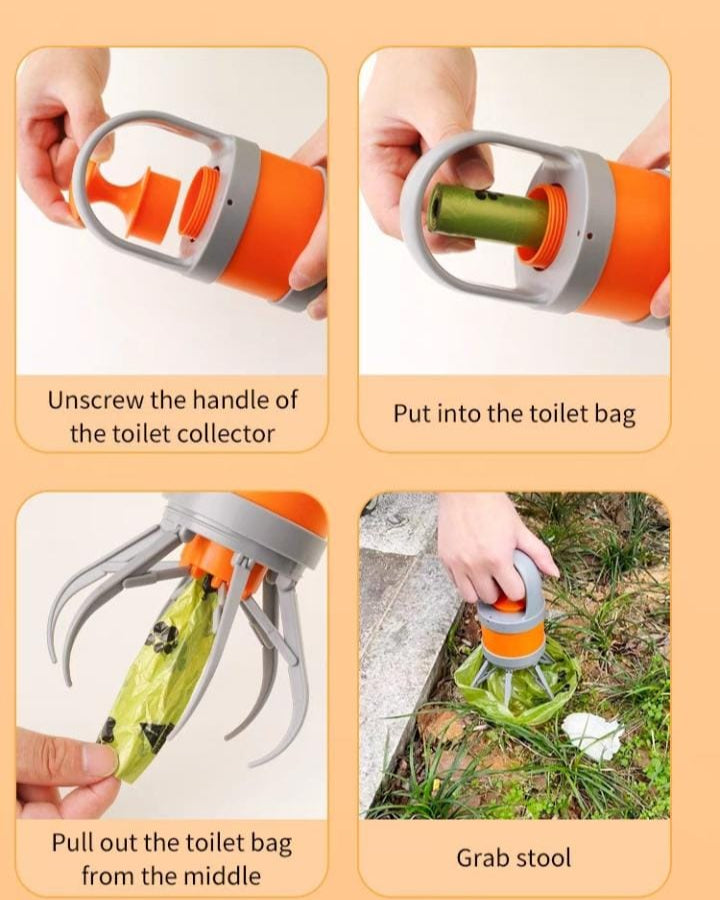 Olvídate de agacharte o ensuciarte las manos: nuestro Recogedor de Residuos para Perros con diseño de seis garras y mango largo es la solución ideal para dueños responsables que buscan comodidad y limpieza.