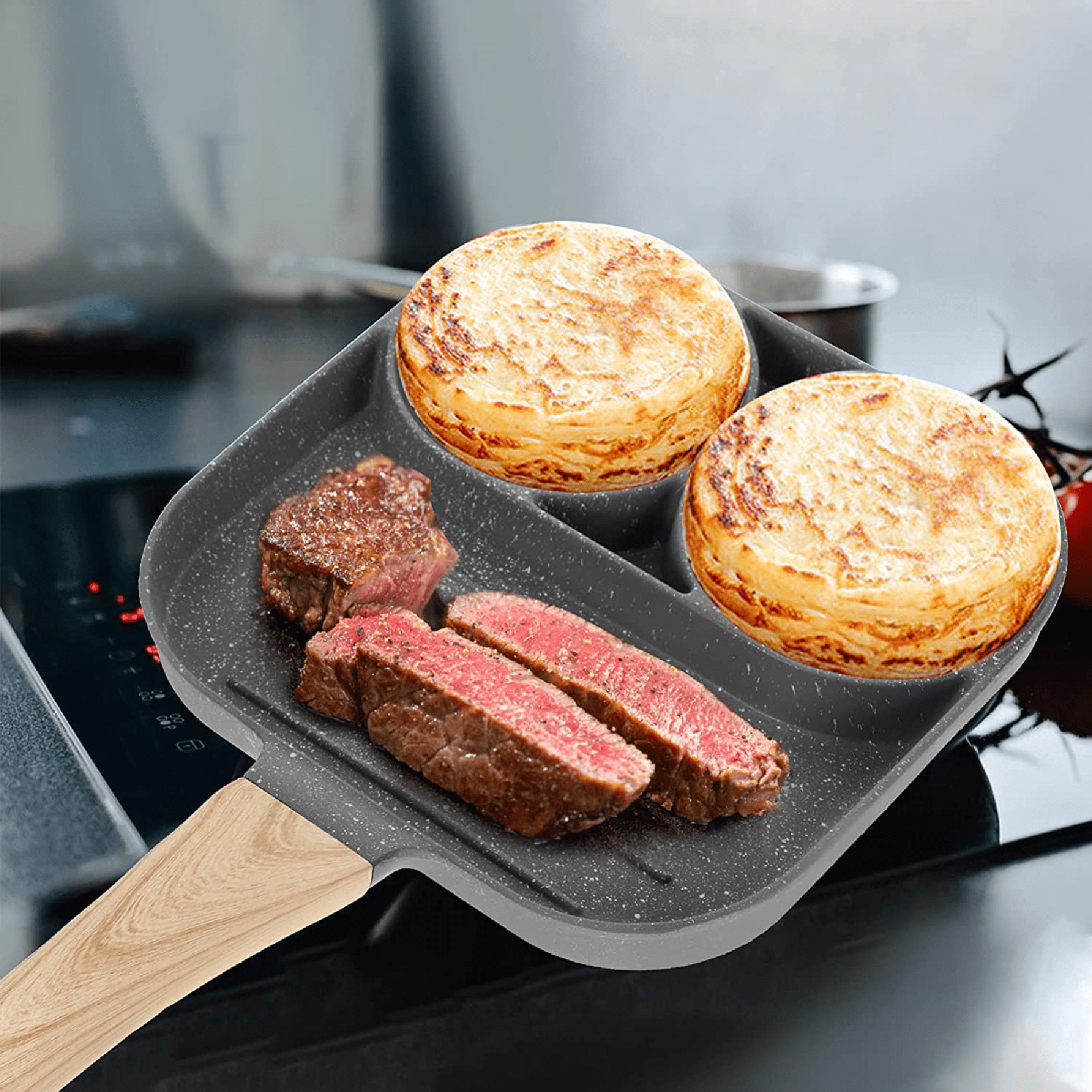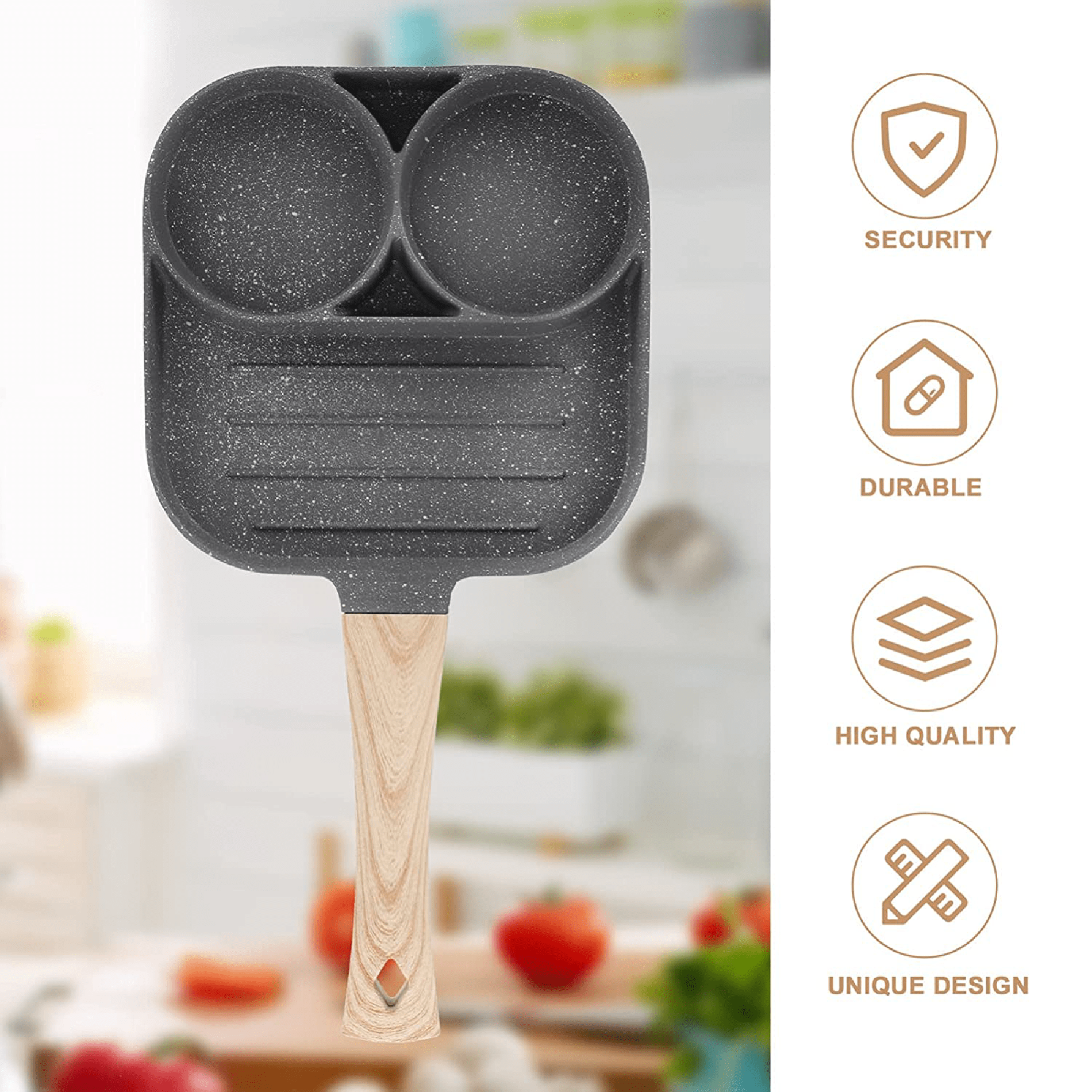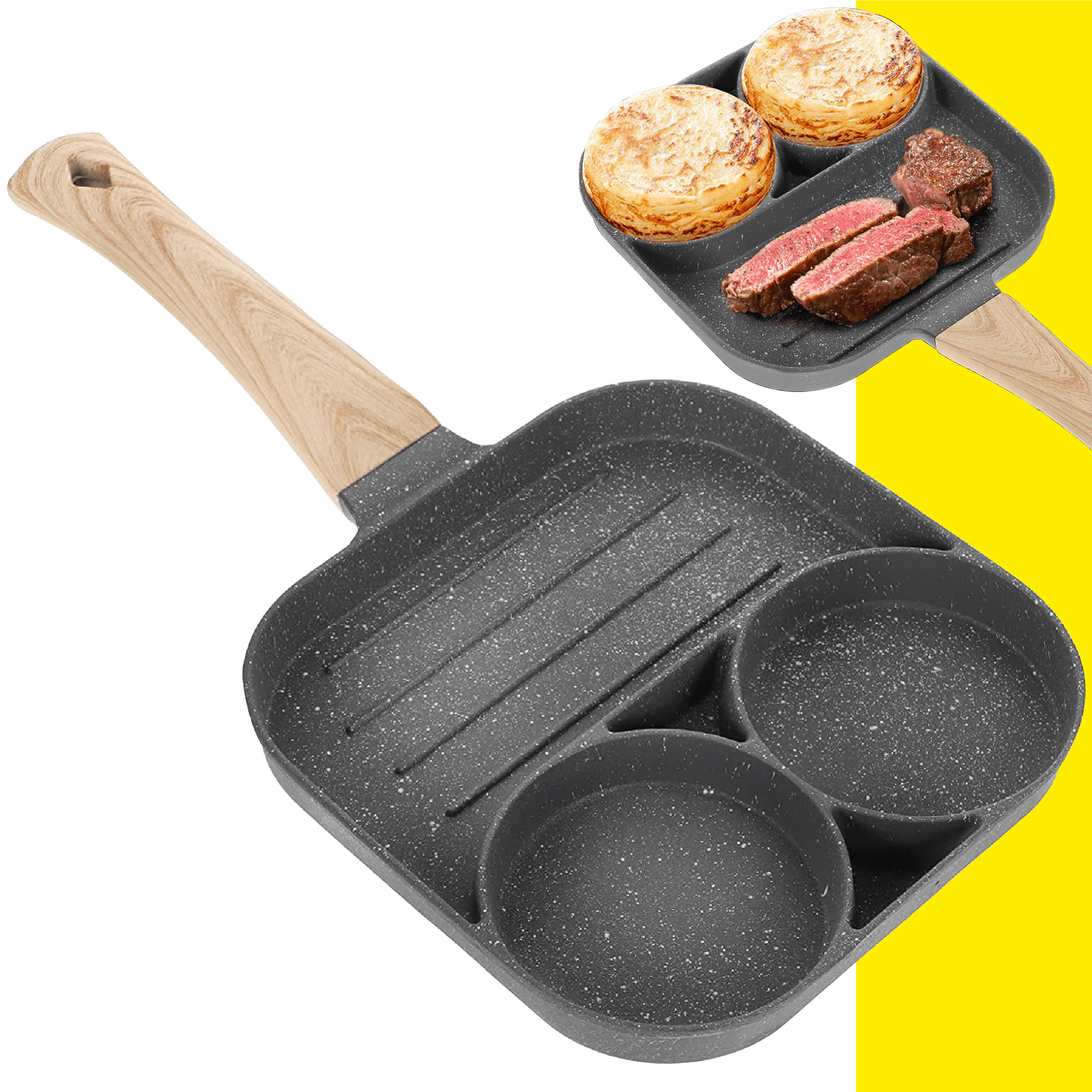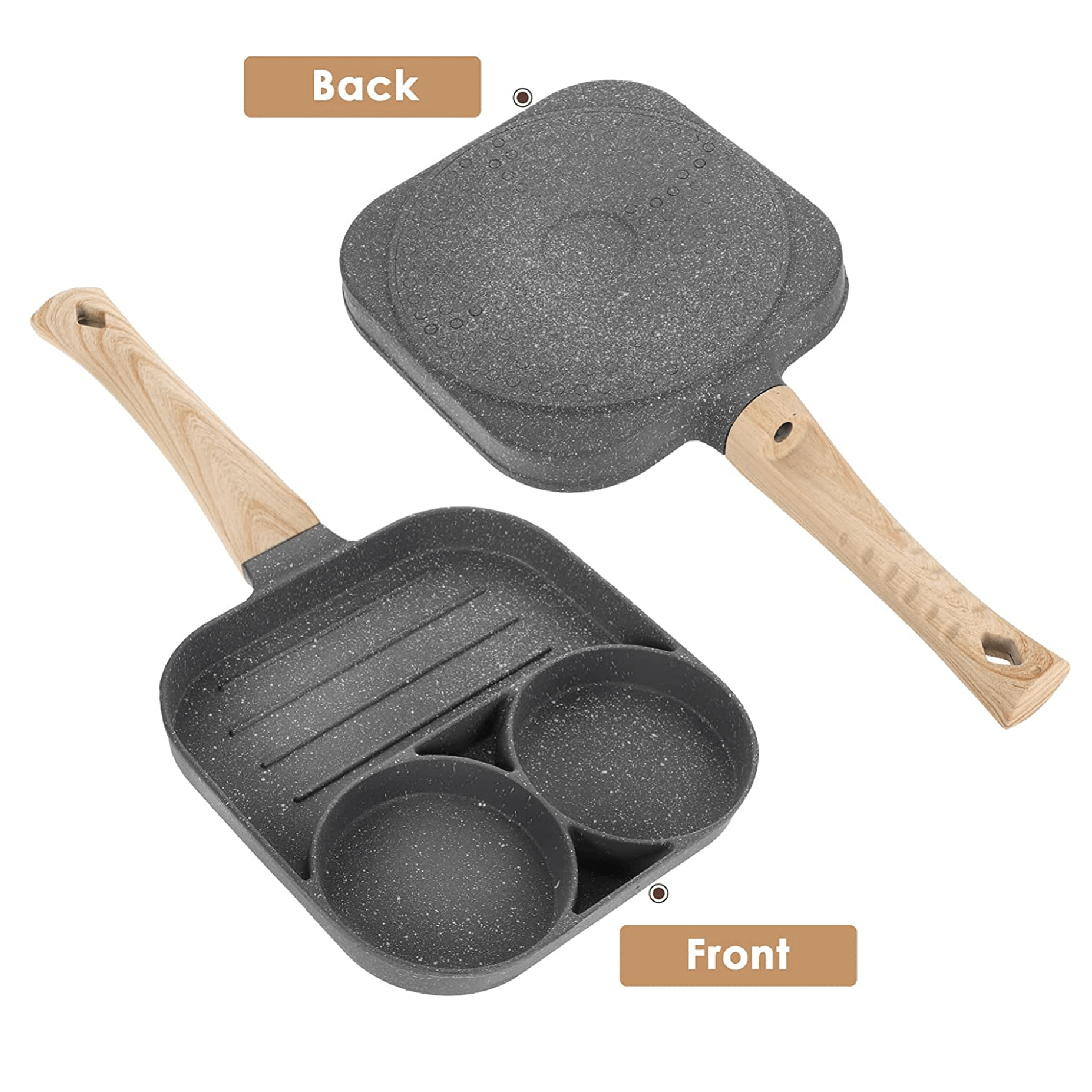 Sartén antiadherente para huevos , Sartén antiadherente 3 en 1 con parrilla dividida, mango resistente al calor.